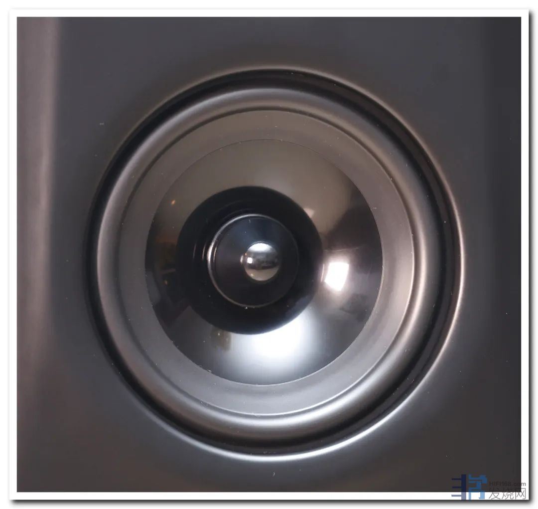 这个高音振膜前方有一片蜂巢状的金属罩,除了可以保护高音单元振膜外,还可以提升高频的扩散效果。