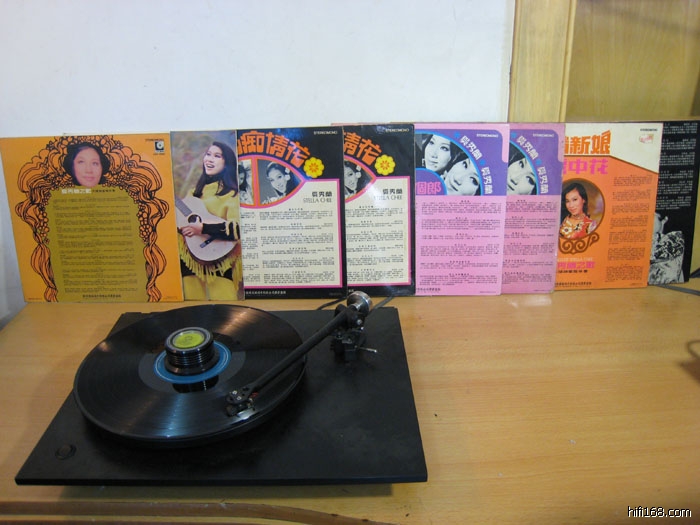 我的LP黑胶唱片系统正在播放《奚秀兰南游纪念金唱片·不是春雨没有来》,墙边立着的唱片的封套那些都是丽风唱片。