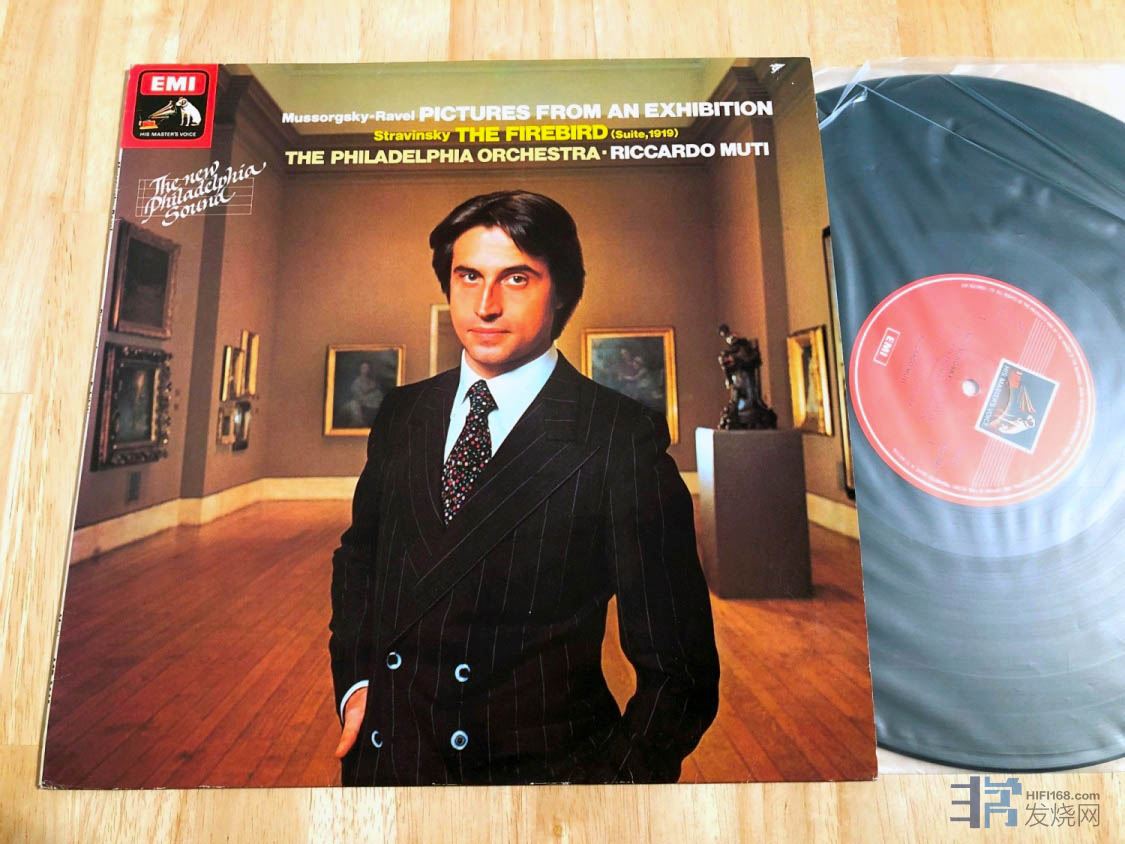 唱片简介:穆蒂 (Riccardo MUTI),爱乐交响 诸多作曲家 穆索尔斯基图片展/ 斯特拉文斯基火鸟 EMI ASD3645 1979年 英国 彩色邮票狗标立体声首版