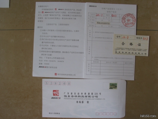 前后级的包装箱都已经扔掉,没保留。但说明书、保用证还在,虽然保用期已过,但还可以作为正品行货的凭证。