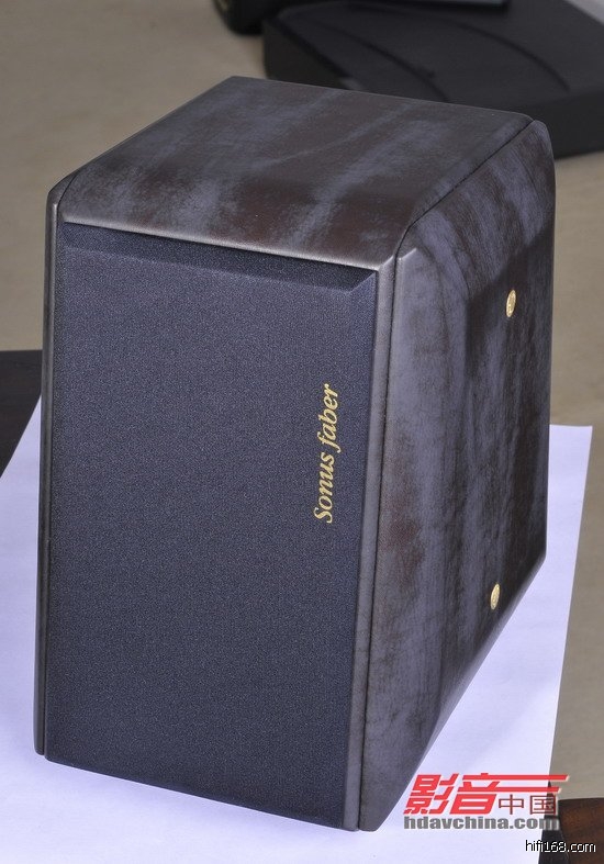 箱体背后的反射孔下面仅有一组音箱线端子,在其所在的铭牌上印着“意大利制造”的英文字样。Toy Monitor的前障板向后倾斜,借此能够提供各种单元之间的时间相位补偿,因此能使播放出的声场更加开阔、宽广。而且它的八个顶点都被“切掉”,侧板也做成了多面形的样子,使之朝两旁稍微凸出来。这样不仅使得外表更加“酷劲逼人”,更重要的是能够消除谐振,并控制驻波,使得传递到耳朵里的声音更加清晰、自然。Toy装载一只25mm双环声波导向铷磁高音单元,位于双环丝质振膜中央那尖尖的ToroidalWaveGuide相位锥有利于改善超高频的延伸。高音单元下面是一只110mm的对称驱动中/低音单元,振膜采用的是黑色纸浆材料,这些单元都是Sonus Faber向单元厂特别订制的,所以内里结构与表现都要比其它外表相同的同厂量产制品优胜得多。分频器也采用了无谐振设计,优化了空间和时间相位。