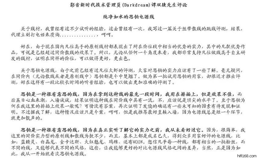 影音新时代:青岛王兄(ID:春风扫落叶) PenNy电源线昨天到的,好家伙听了一会,完了!!!!中毒了!!!当时就后悔,买少了!!!!感觉细节明显多了,纯净的很,速度和空间感上来了,我用的雅马哈4600,子弹飞行轨道都听出来了,那个感觉太棒了,比我换信号线都来强,真没发现这4600机确实不错,这也多亏这条线,此线卖便宜了!真是好线,我说这么多怕别人误会我是托,绝对好线!!!外观非常漂亮,做工巨好,就是线太粗,不过越粗越好!!!好到令人不忍心用,我再定一根!!!纯收藏了!!