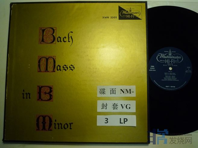 巴赫B小调弥撒,盒装3张,西敏寺美国压片,单声道,盒子背面边缘有裂口,180块