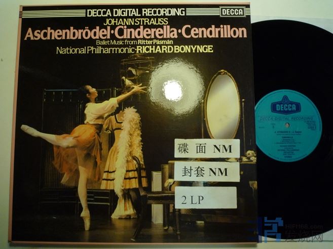 波宁吉指挥约翰.施特劳斯《灰姑娘》,DECCA数码录音,荷兰压片,盒装两张,音效很好,第三面有条1厘米的划痕,如图,其余NM,150块
