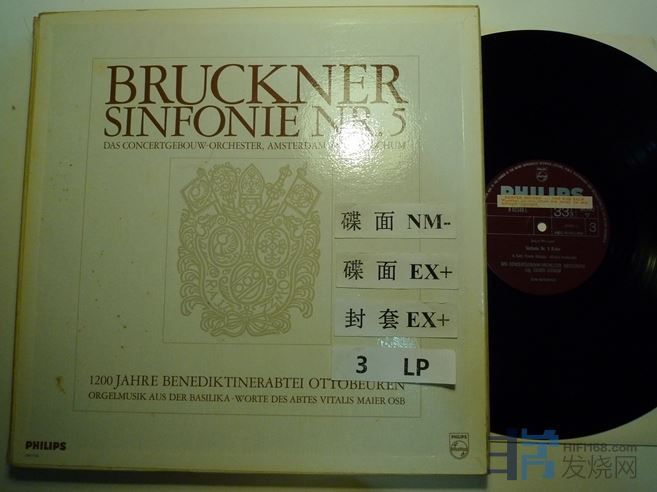 约胡姆指挥布鲁克纳第五交响曲,飞利浦单声道样片,荷兰压片,2张,再附赠一张德律风根立体声的克莱勃斯指挥布鲁克纳第六交响曲,一共3张,75块
