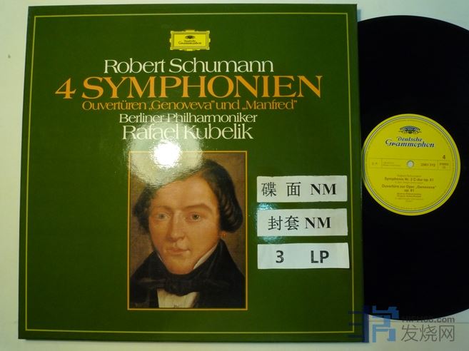 库贝利克指挥舒曼四首交响曲全集,“吉诺维瓦”序曲,“曼弗雷德”序曲,DG德国压片,盒装3张,120块