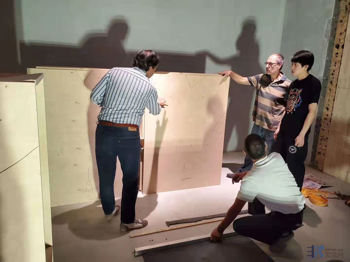 9月27日一早,大小周老板与王总一同亲赴山东潍坊为私人订制的号角音箱进行安装,BH老板兼音箱制作人Thomas以及销售经理Andrea亲临现场,协助安装。所有组件直接从国外运至潍坊。