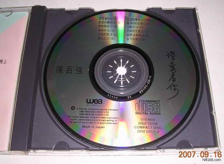 1:陈百强《深爱着你》SONY11+细字版.(1985年WEA唱片出版,1985年日本SONY制造。排名十大靓声之最。