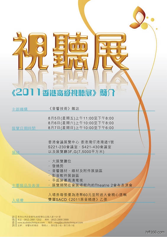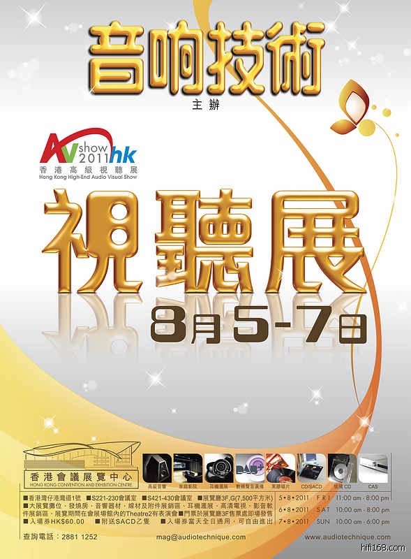 香港高级音响及家庭影院界的盛事《2011 香港高级视听展》,于 2011 85日至7日星期五至星期日一连三天,第9届假 湾仔香港会议展览中心 隆重举行。