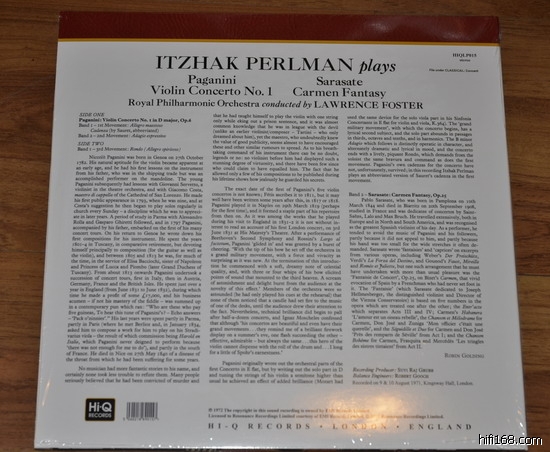 最近出了帕尔曼经典的帕格尼尼第1小协和卡门幻想曲的LP,版权是EMI提供的,但左上角是标:HI Q SUPERCUTS