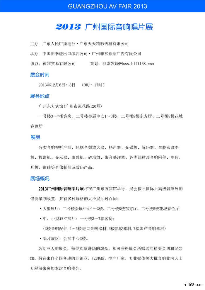 2013广州国际音响唱片展(本届参展名录详情请看第二页15#)