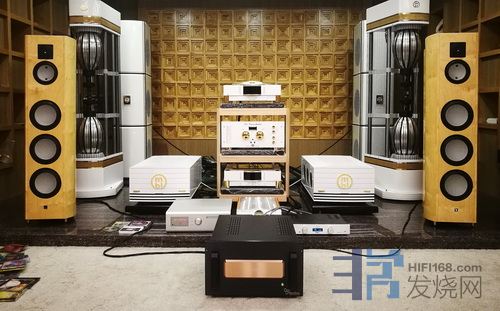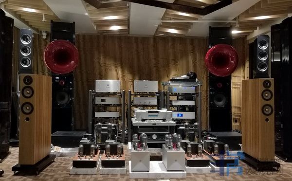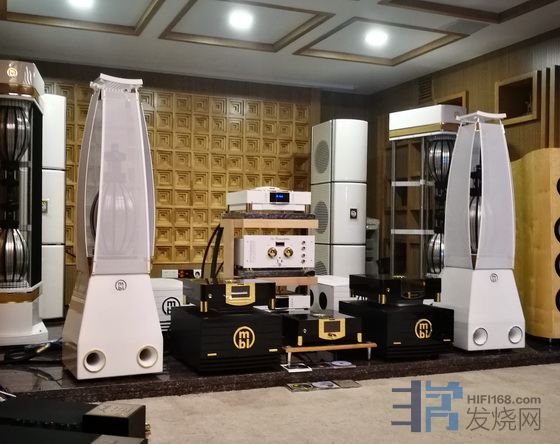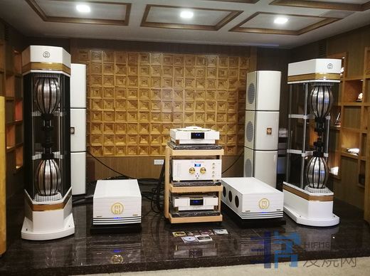 MBL的旗舰大葫芦串四件套,据说是比尔盖茨家的选择。中高频的特征和101E相比没听出多少区别。试听房间的层高3米左右,空间有限,可能不利于大葫芦的发挥。明显的不同在于,低频表现力优异。难倒很多大系统的《雨果发烧碟一》第二首《小刀会》开头两声大鼓,在大葫芦这里,气势磅礴却没有生硬的刺激感,余韵悠长收放自如,这种宽松的低频在听感上很舒服耐听。这个大鼓,其他系统能完成尚属不易,它却能轻松展现出美感,应该是得力于四件套里那两个巨大的低音柱。当然这个系统的价位也上了大台阶,到了两百万的级别,没有可比性。