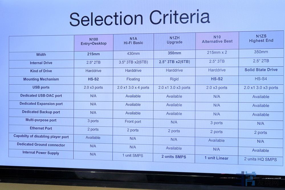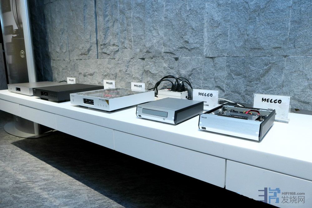 全系列的MELCO产品⼀字排开,让人可以近距离比较它们家产品的差异,最左边开始分别是N1AH、N1ZH(⿊⾊机箱)、N1ZS/2A、D100、E100。▲