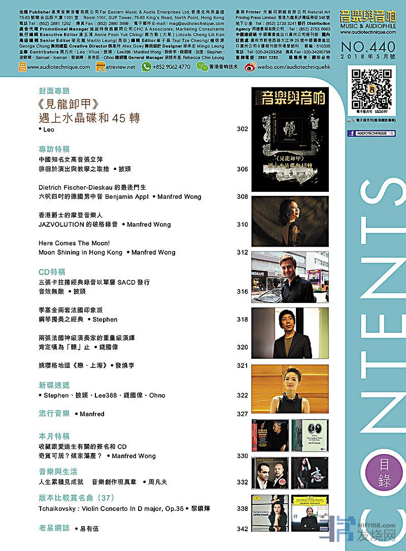每期的音樂與音响都為樂迷奉上最新專輯介紹,今期封面專題由Leo執筆《見龍卸甲》遇上水晶碟和45轉 、披頭專訪中國知名女高音張立萍、Manfred專訪德國男中音 Benjamin Appl、Moon、及JAZVOLUTION的 Justin Siu。其餘的最新碟評、音樂與生活、老易網誌…等等欄目也是同樣內容豐富,記緊捧場啊!