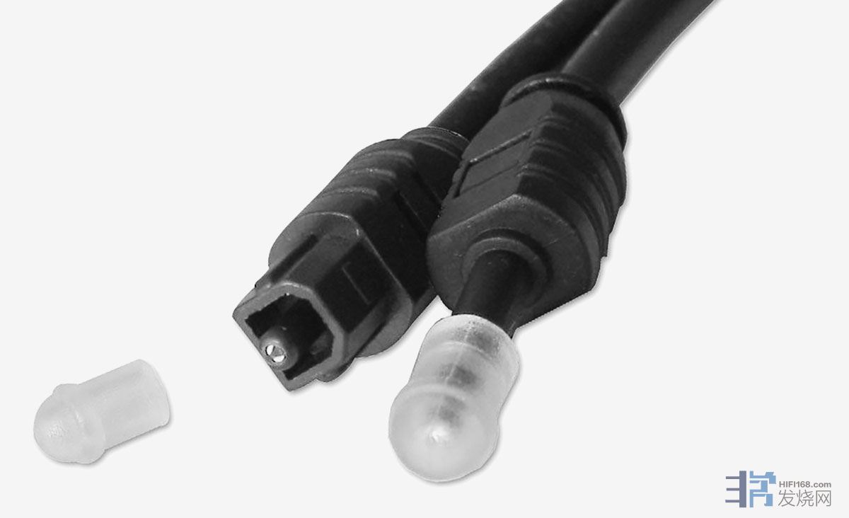 由于光纤线同插头都比较脆弱,所以买线的时候多数两边插头都会提供胶套保护,左边是常见的方形端子、右边则是外形近似3.5mm TRS插头的 Mini-TOSLINK,较常用于DAP。