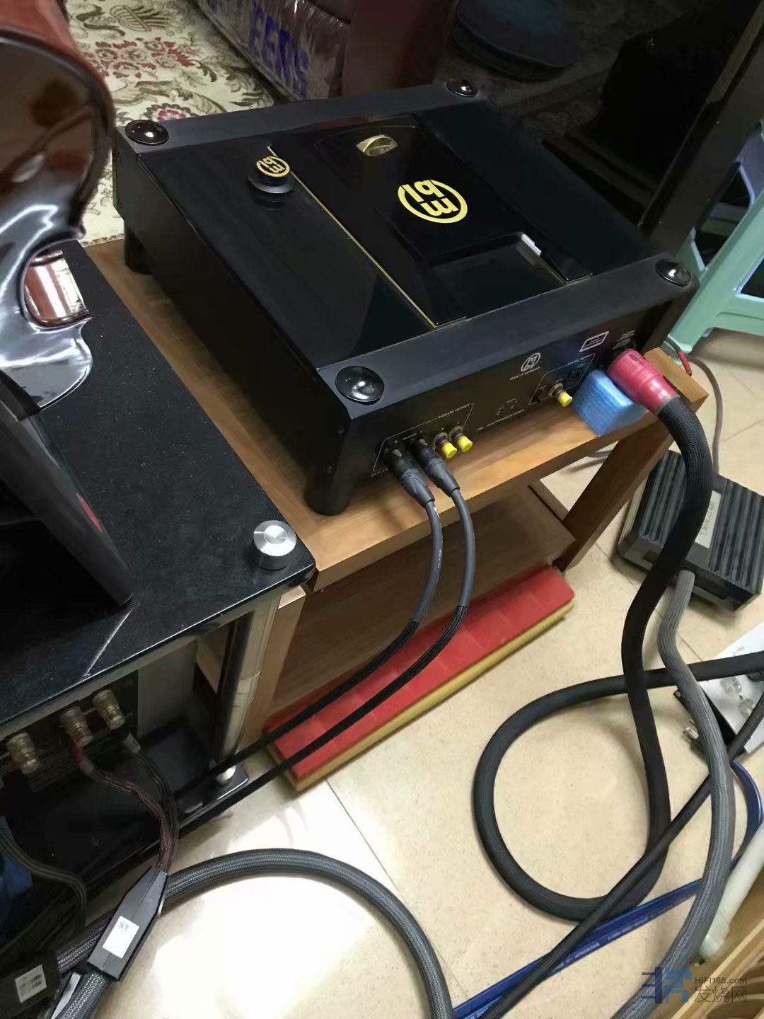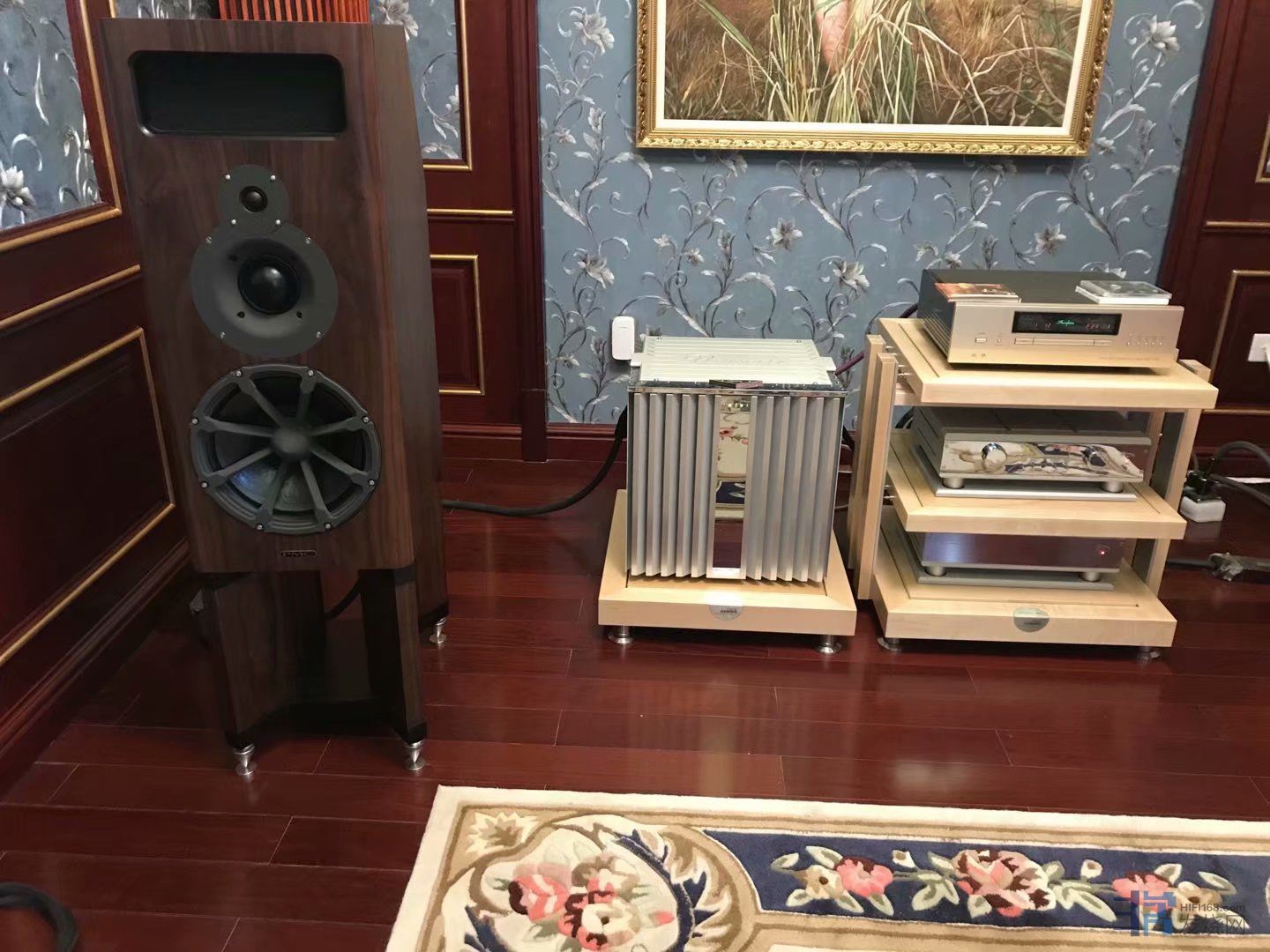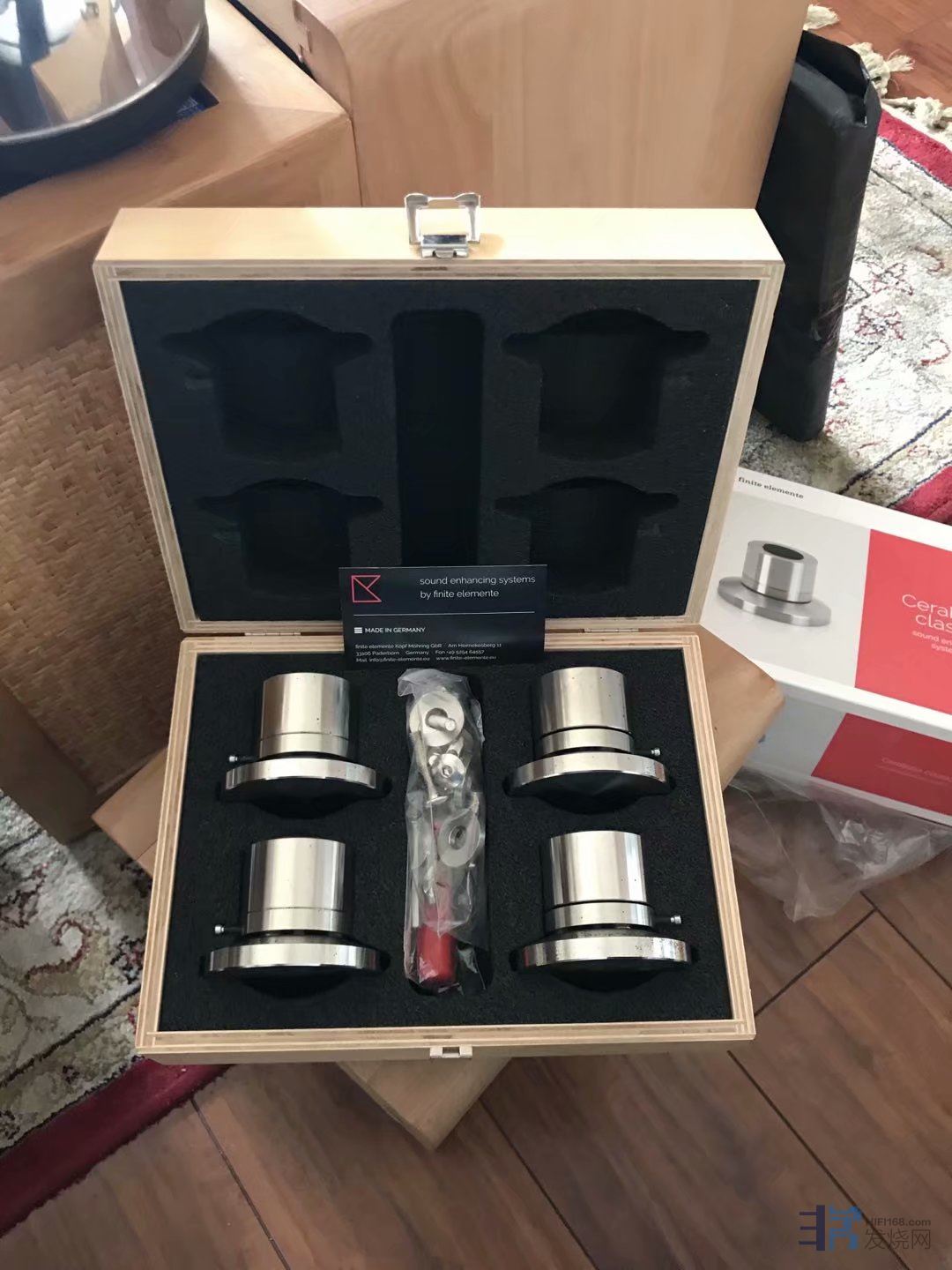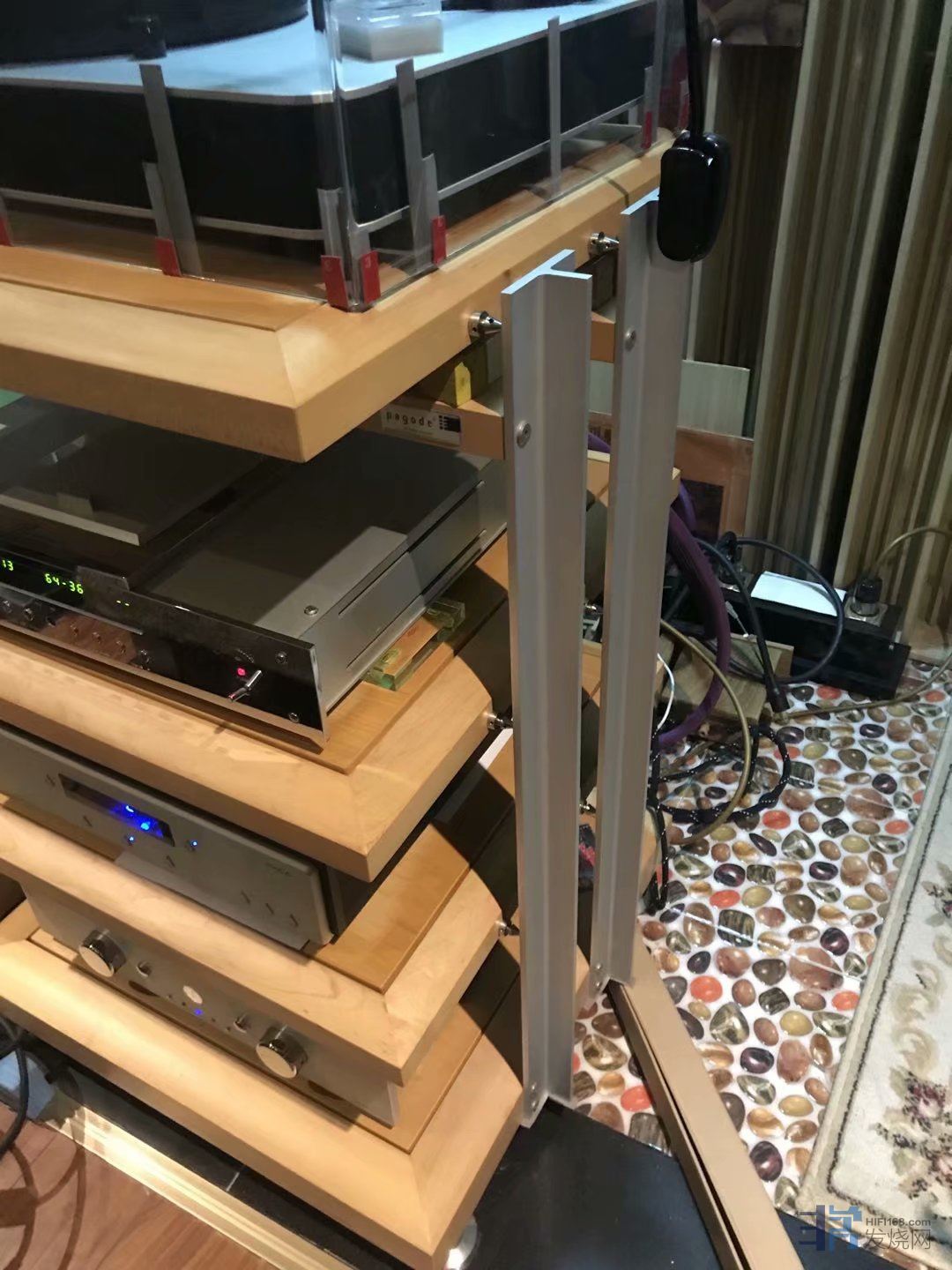 这期间我朋友北方再次偶然在闲鱼上看到上海烧友有出二手原装参考系列HD02三层FE枫木原色机架(立柱包木),直接拿下,秒杀,上海烧友也是两套FE机架,一套德国原装FE三层机架,一套广州复刻的山寨FE三层机架,上海烧友告诉我朋友北方,山寨和原装外观接近,但是效果差距巨大,朋友北方因为运输费用问题,没有买山寨FE,只买了德国原装FE机架。
