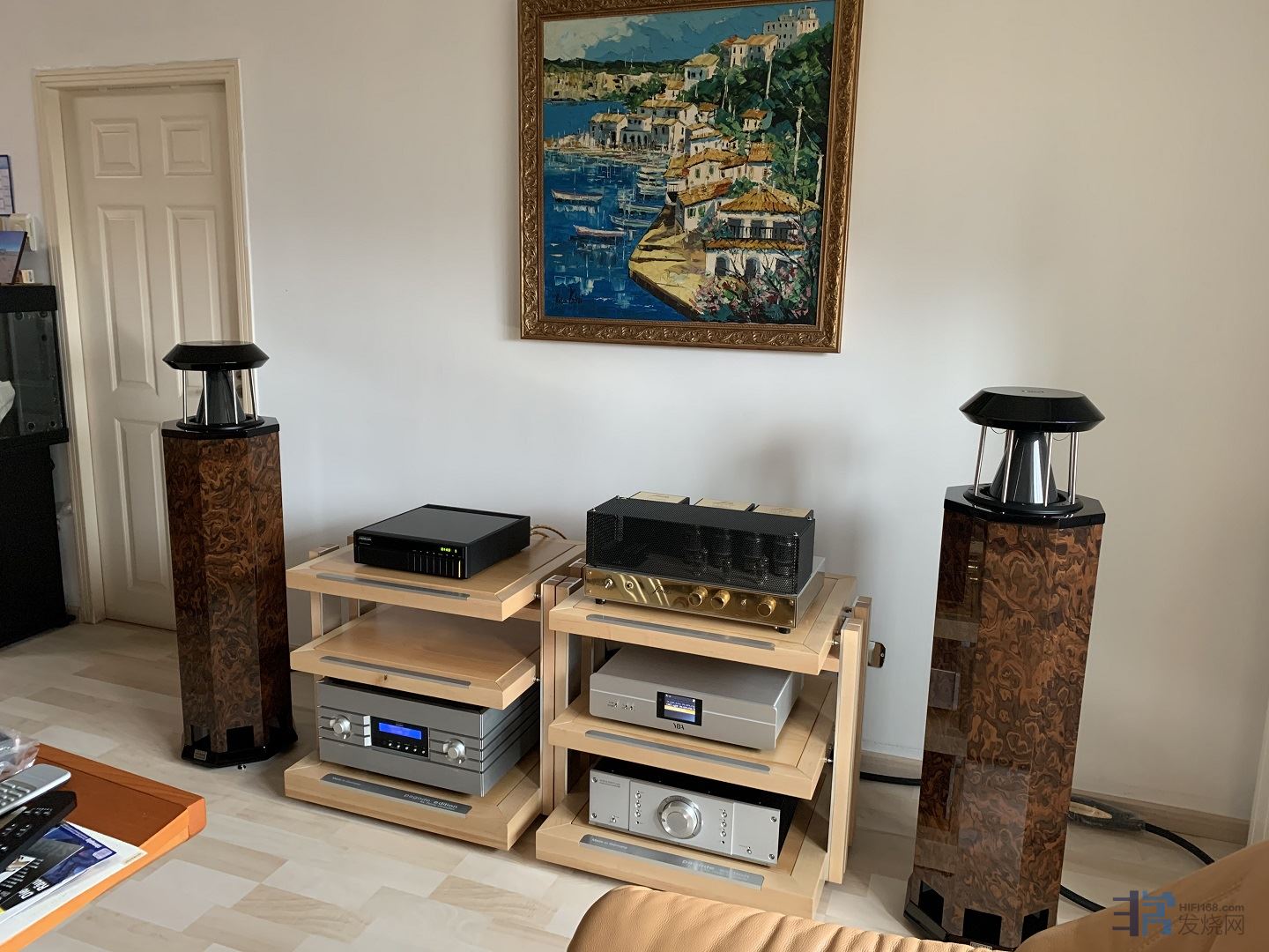 这是由技术独特的德国著名扬声器公司德国殿堂German Physiks所设计的HRS-120SE全频全向落地式扬声器及同厂旗舰帝王合并功放搭配的系统。重播音乐有着相当优异的空间感,自然、从容不迫,透着一气呵成的顺畅感,让音乐尽情绽放。