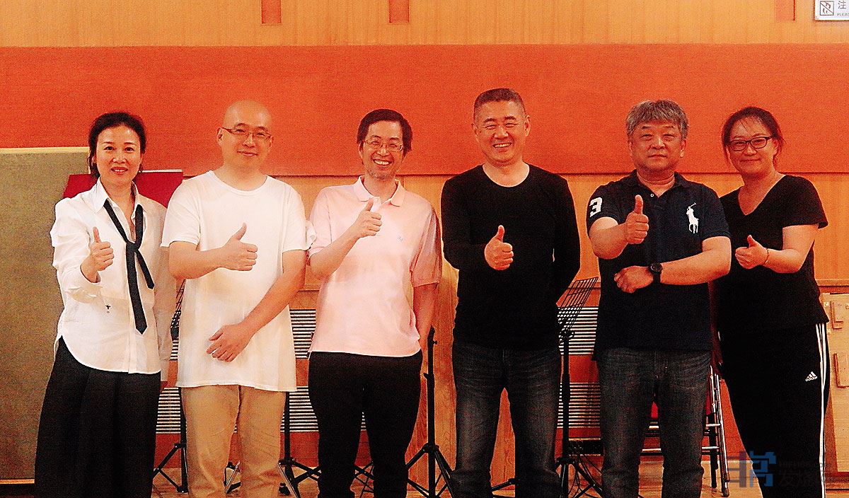 唱片在中国剧院录音棚录制,下图左到右分别是欧阳老师、邸扬老师、尤景仰老师、小沛老师、万小元老师、录音助理小李。