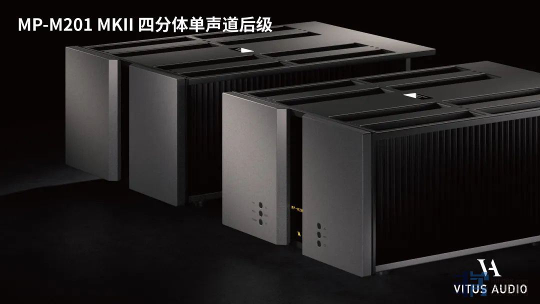 MP-M201 MKII的研发历时超过9年,结合了Vitus团队的所有智慧和努力,4分体的结构不仅搭载了大量的电路和元器件,而且在重量上也到惊人的300kg。MP-M201 MKII是专为支持Bi-Amping四路分推的音箱设计,并在高音的驱动和低音的驱动上做了输出特性和输出功率的划分,使其更具针对性。纯甲类和甲乙类结合也是绝无仅有的,这不仅需要复杂的架构更需要实时的精准控制。MP-M201 MKII是驱动巨型旗舰音箱的终极武器,也可以说是Vitus的最高成就。
