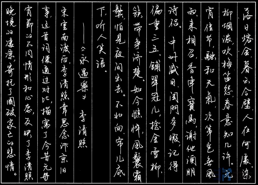 宋词与书法之美,硬笔书苏东坡与李清照词(摘自网络):