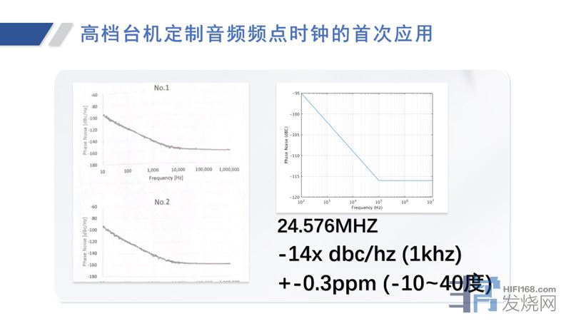 所以我们去定制一个特别高端的时钟,可能是数万元级别的台机才会用到的一个时钟!上图是我们做的一个相噪数据。它的频点是24.576M,它的相噪在1K赫兹下可以达到-143dbc/hz,MDA3在-10°到40°的情况下可以做到正负0.3PPM。这是一个很夸张的数据哦。而且我们是直连主时钟的,所以我们的相噪损耗非常低。这么高的精度,就为解决IIS的问题!