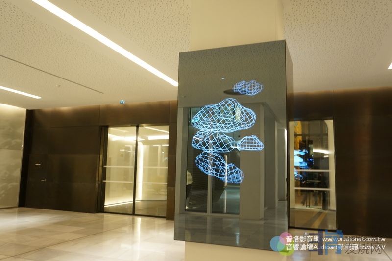 Devialet办公楼一楼大厅,请注意地上没有地毯,但天花板全部都是吸音设计,所以进入大厅很安静,我们的音响空间可以多学这样的做法。