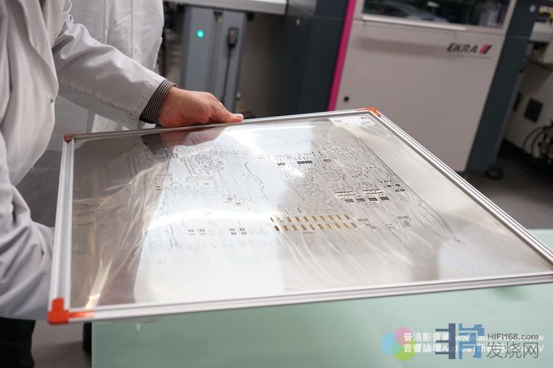这是Devialet功放母版的印刷板,为何要用印刷板呢?因为上面的零件都是SMD表面粘着元件,要是上锡膏粘着的,所以要先用印刷方式把位置留出来。