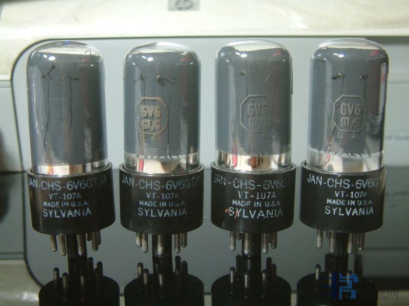 6V6GT/6P6P:大八脚的管基,单管单端输出功率4W左右,推挽功率10W左右。6V6是束射四极管,管芯内有一对集束板。大部分的6V6在管内玻璃壁上喷有薄碳,用于吸收游离电子。6V6管高频细腻、通透,有直热管的韵味,也有人戏称其为“小300B”;低频扎实有力、速度感强。