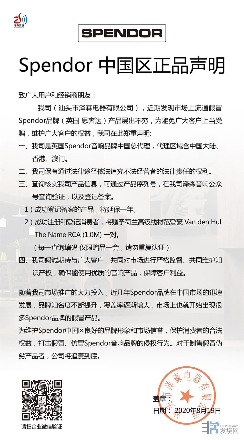 【Spendor正品声明】即日起 提供Spendor免费延保及注册服务 [复制链接]