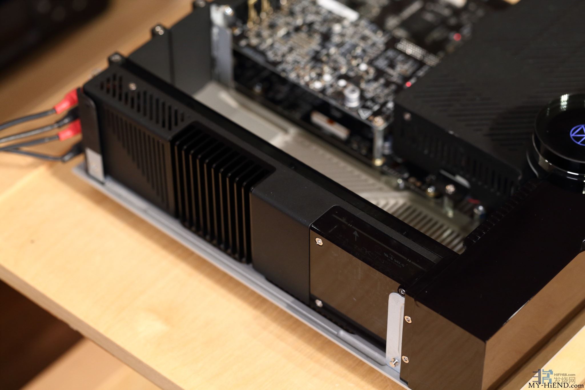 靠近前面板的独立黑盒子应是主电源部,从散热孔隙中看得到内部电容与线圈。