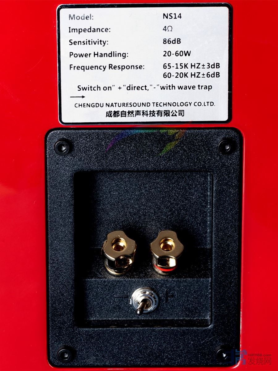 板材采用优质MDF板,厚度15mm(一般市面常见的为10mm左右吧)。后面的接线柱是镀金的,也相当漂亮,自己还给它配上了金属的铭牌(正式版会带上编号)。
