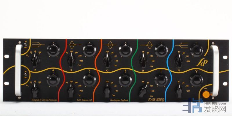 当然, 如果你的空间条件处理的很好, EQ自然不是必须使用的设备. 因为我的经验还是告诉我, 讯号的路径中, 多一个步骤(Stage)都会多一点损耗以及失真. 再好的EQ亦然, 它还是会带来染色与失真. 所以你如果没有现实上的限制, 当然去打造一个理想音响空间才是正途. 这也并非是说, 频响一定要是平的才是"合格". 事实上, 模拟EQ修正的方式并不能从根本解决Room Acoustic所产生的频响缺陷, 所以它只能做为一个辅助工具. 其实你在讯号前段插入一个EQ来调整, 与某些音箱的分音器开放些许的高低的量感调整是类似的道理. 但是EQ所能调整的空间可是大上太多了! 另外一个你可以思考的部分是, 那在前段讯号上做equalization, 与在音箱分音器上做, 哪一个在讯号的"损耗与失真"影响会小一些? 甚或是, 如果音箱里面没有分音线路, 而是使用equalizer在前段调整出一定的频响平衡度? 你会说, 什么音箱没有分音器? 哈哈, 正解! 就是全音域单元(注: 这时候, 你的讯号路径上, 其实没有"增加"一个"步骤". 甚至更好!). 全音域单元的音箱通常低音部份比较薄弱, 事实上, 适当的使用EQ调整, 会让你的全音域音箱更全面! 专业中的equalizer有太多种, 的确会让人眼花撩乱. 各家各个年代所使用的技术方式也有些不同, 似乎也各有特色. 不过, 我不可能试遍所有的EQ. 所以我目前也没有答案. 许多传奇的EQ, 也是可遇不可求, 象是TELDEC, Decca, DG当年录音所使用的passive equalizer. 下图的EAR 825Q Mastering 5 band equalizer可能也要随着设计者的离世而成为绝响!