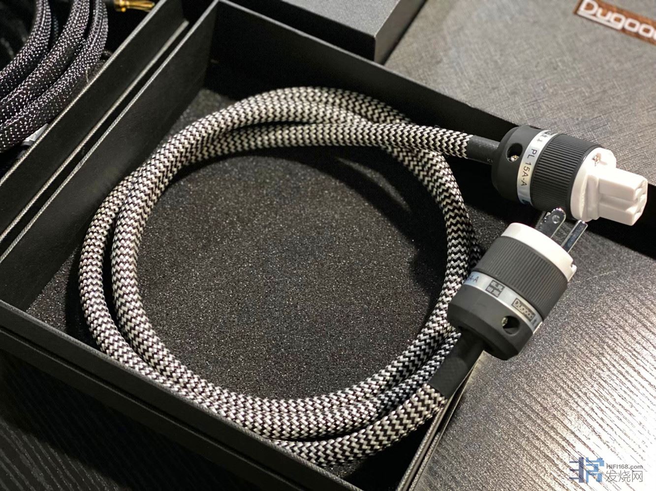 这是度高准备推出的电源线,该系列线材得到了一位音响界的高人帮助,历经了三年时间开发定位。黎总说-该线材经过了几个超级大烧的评测,都得到很好的反馈!度高公司对这款电源线信心满满!