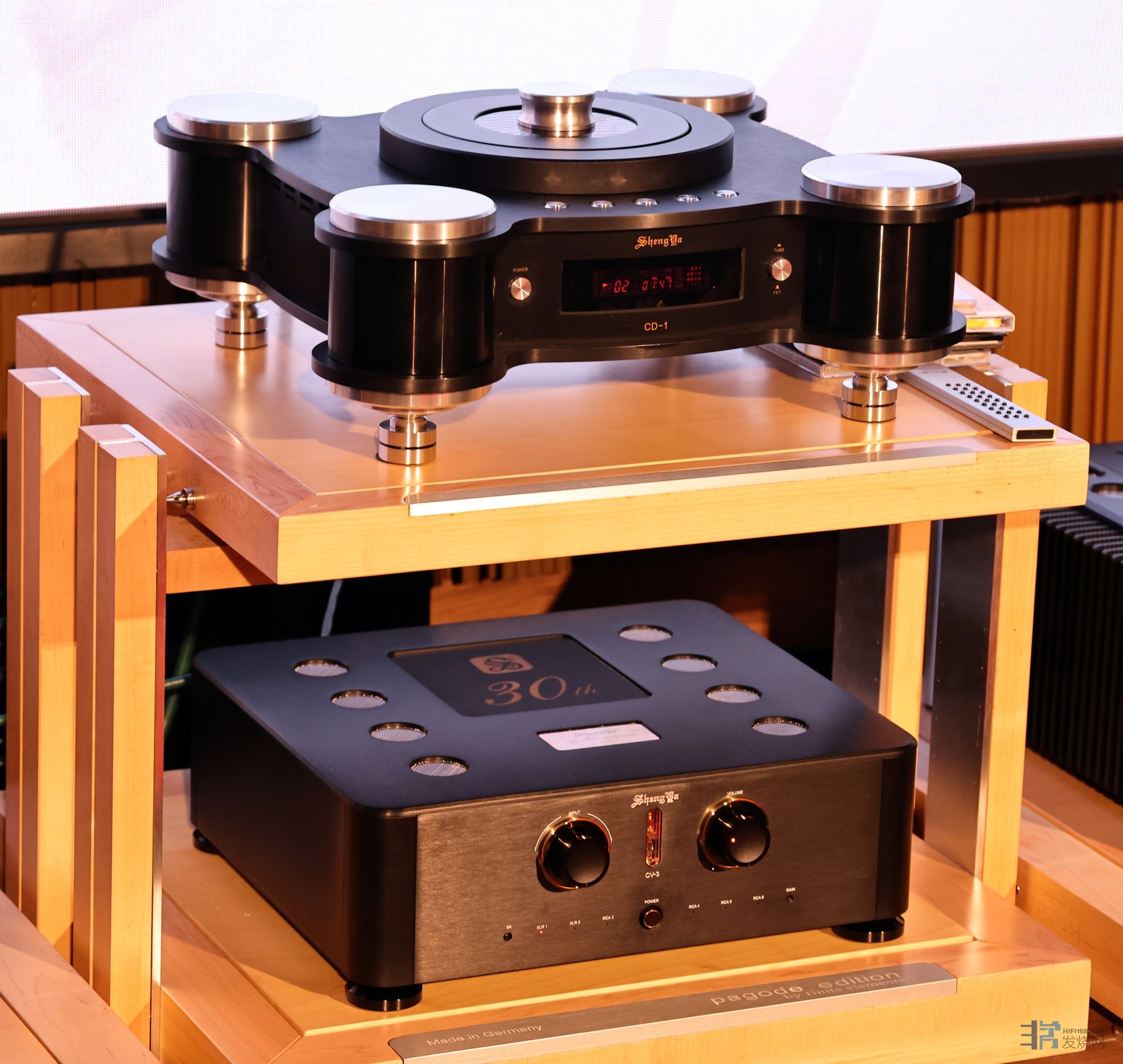 搭配声雅CD 1旗舰CD 机、声雅30周年纪念版CV-3 胆前级。CV 3前级售价2.98万。