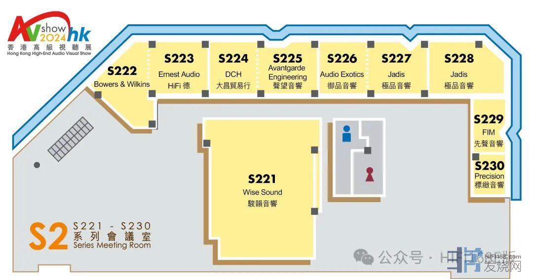 • High-End发烧展房—— S2及S4会议室,两层总共提供 20 间展览房间可供浏览,总面积达 2,916平方米。