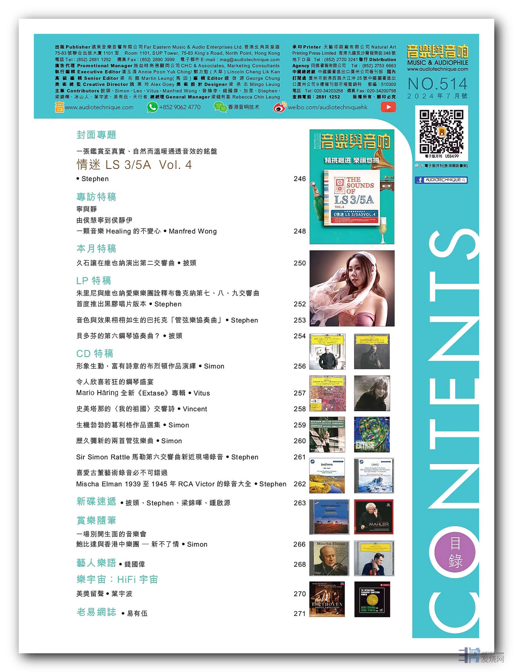 形象生动,富有诗意的布烈顿作品演绎  、Mario Häring 全新《Extase》专辑 、史美塔那的〈我的祖国〉交响诗 、生机勃勃的葛利格作品选集、历久弥新的两首管弦乐曲、Sir Simon Rattle马勒第六交响曲新近现场录音、Mischa Elman 1939至1945年RCA Victor的录音大全。其余的新碟速递、赏乐随笔、HiFi宇宙、艺人乐语、老易网志 …等等栏目也是同样内容丰富,记紧捧场啊!