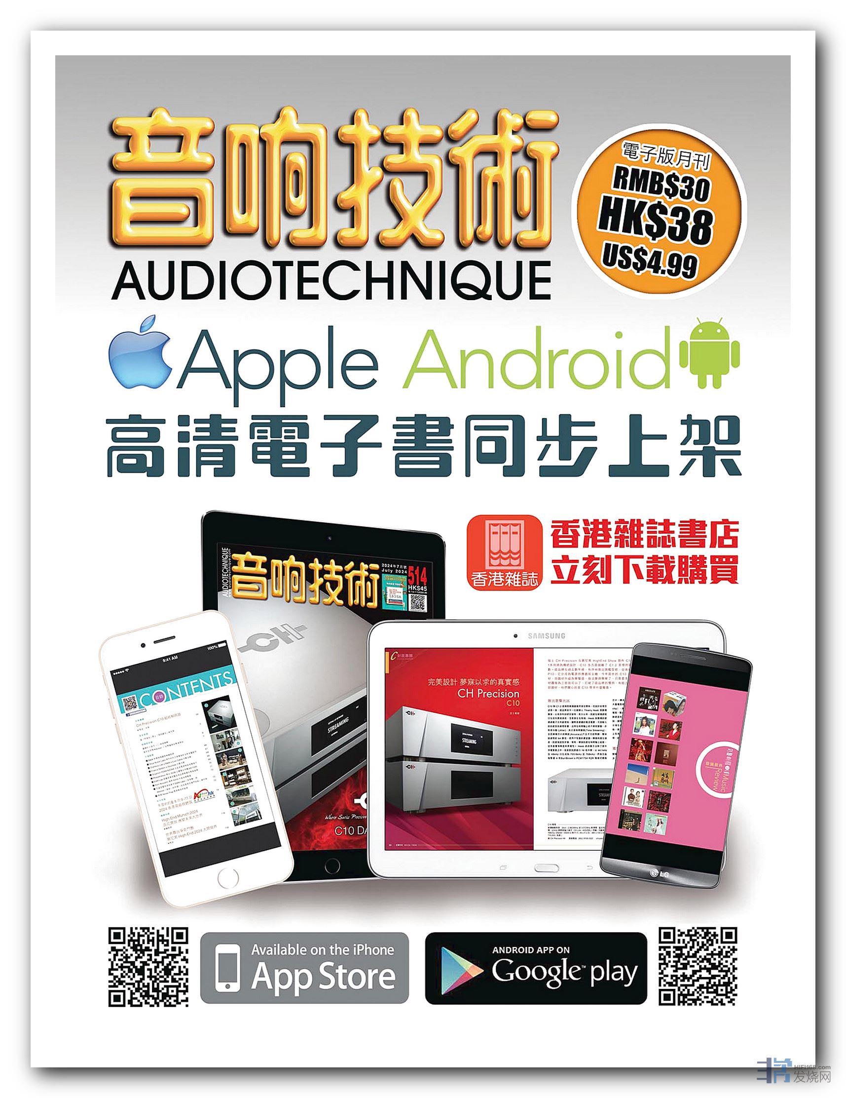 【音响技术】书刊在全港书报摊、音响店、CD店铺有售,而外地的读者除可透过订阅之外,亦可考虑购买电子版,【音响技术】已于Apple Store及 Google play两大电子平台登陆,欢迎选购是月新书或补购过往期数。