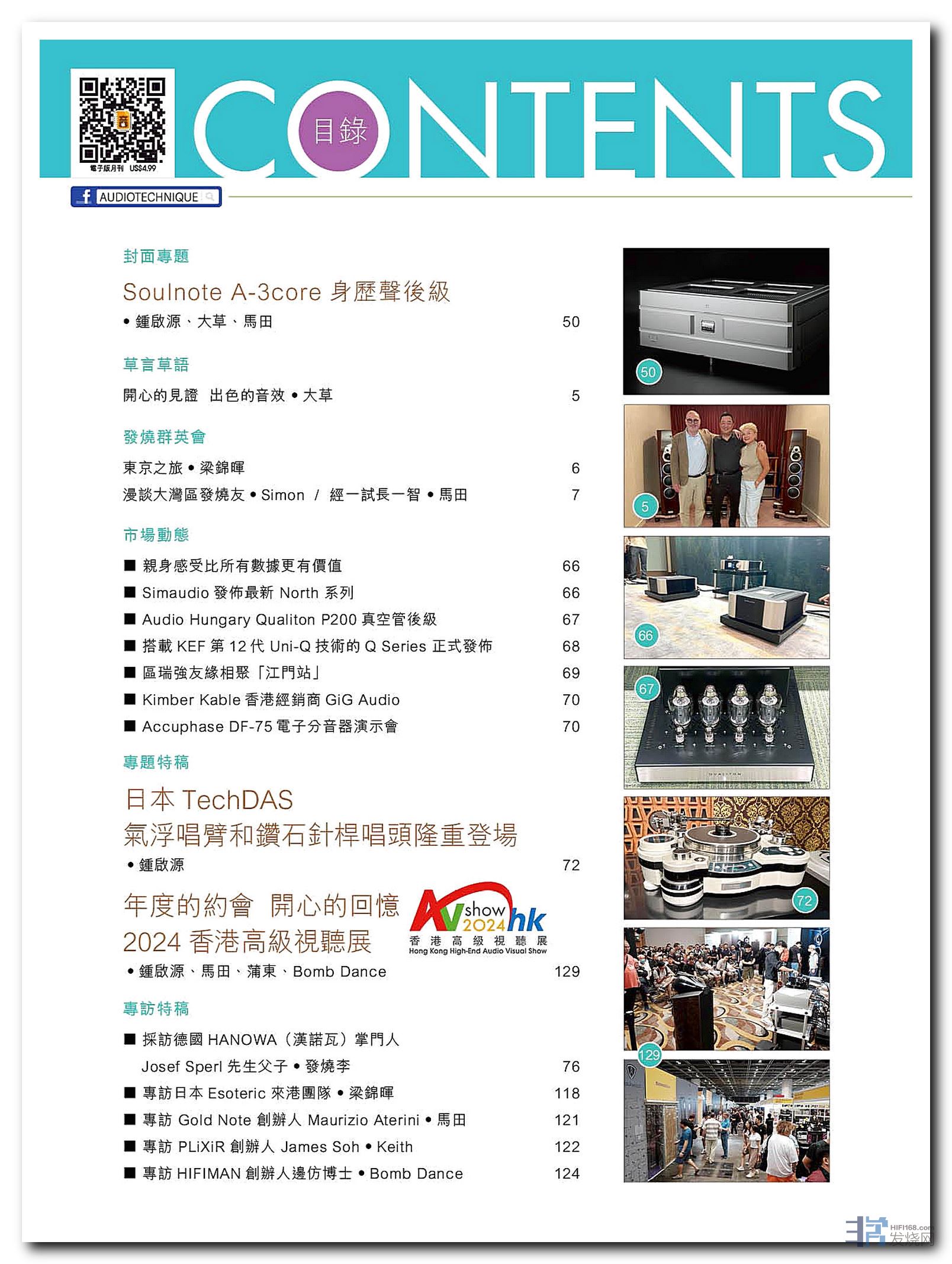采访德国HANOWA(汉诺瓦)掌门人Josef Sperl先生父子、专访日本Esoteric来港团队、专访 Gold Note 创办人 Maurizio Aterini、专访 PLiXiR 创办人 James Soh、专访HIFIMAN创办人边仿博士。
