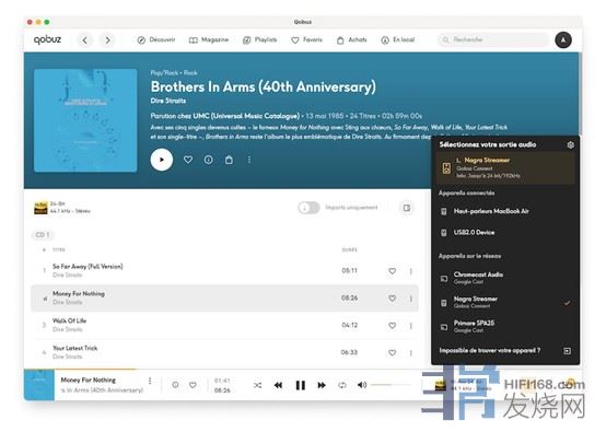 更高端的是,Nagra 网络播放器兼容 Audirvana 和 Roon 这两款高级解决方案。这两款解决方案集成了 Qobuz,并允许您管理存储在计算机或 NAS 服务器上的文件库。但我们甚至还能做得更好:Qobuz Connect!Nagra 是首批集成此兼容性的合作伙伴之一。因此,您可以使用 Qobuz 应用程序,并从 Connect 播放点列表中简单选择 Nagra Streamer。 ‎