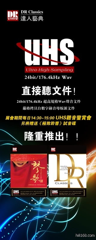 展会中达人艺典将在813室每日举行UHS文件视听show,参与活动者将赠送试音CD唱片礼品。(数量有限)
