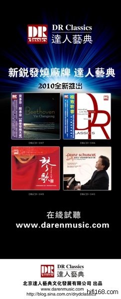 达人艺典携2010全新发行的四张发烧新作《殷程宗-舒伯特》《殷程宗-贝多芬》《琴歌》《DR极致聆响》参展2010年9月3日-5日的广州白天鹅音响展。