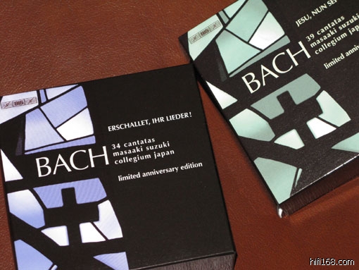 对铃木雅明的巴赫康塔塔,我也有这种感觉。虽然几年前已从网上下过很多集,并大为叹服,对唱片也心向往之,却一直未曾收过一张。也许是数量不少,不知从何开始,总是感觉时机未到。现在好了,全集还没录完,前四十张已打包,呵呵,一网打尽(还未尽啊)的时候到了。于是焚香净心,把铃木老爷请回来了。打开一看,居然直接采用了正价版的说明书,压片、音质、印刷也和正价一模一样,也就是说,除了缺一张底纸和塑料盒,和正价版全无二致!当然,后来的十多张原本是SACD,现在变成CD了,不过这对俺来说毫无问题。