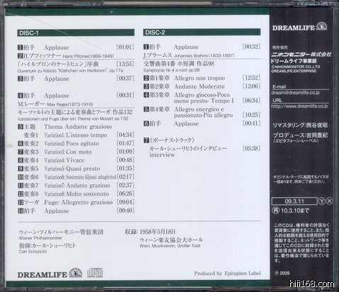 由日本dreamlife公司复刻的,由勃总最为敬仰的伟大的卡尔.舒里希特指挥维也纳爱乐乐团音乐会实况录音!曲目为普菲茨纳、雷格和勃拉姆斯管弦乐作品,2cd豪华包装3900日元!附当年音乐会说明书一份!