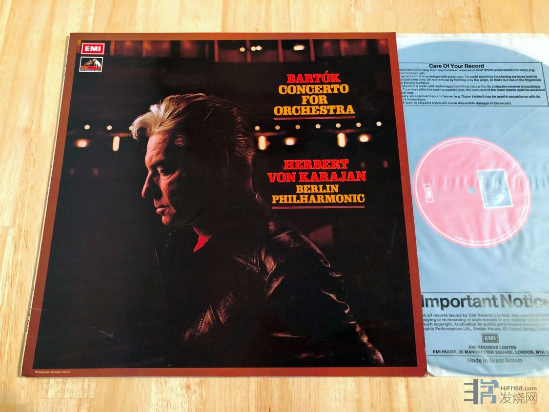 唱片简介:卡拉扬 (Herbert von KARAJAN),柏林爱乐 巴托克 管弦乐协奏曲 EMI ASD3046 1974年 英国 黑白邮票狗标立体声首版