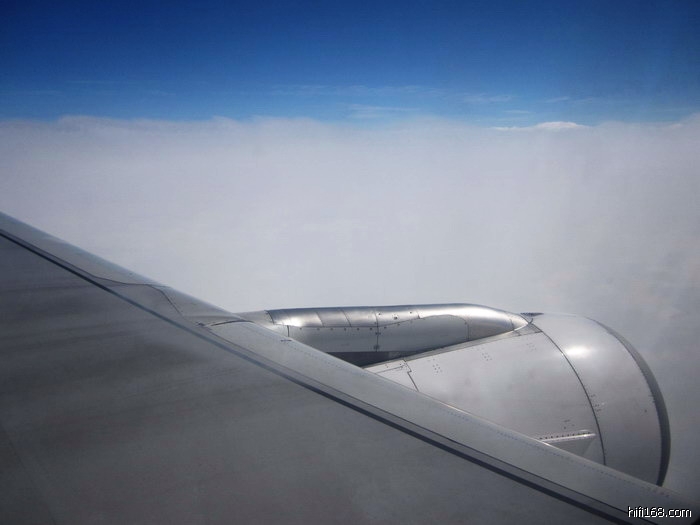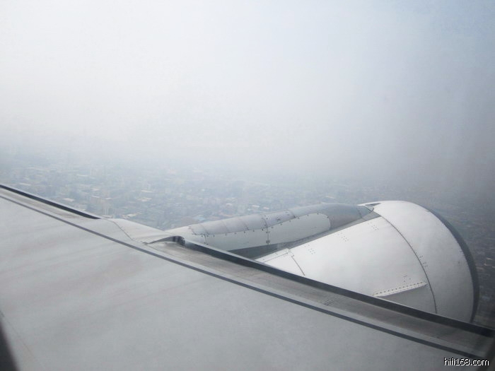 飞到广州外围,天上不见朵朵的白云,而是云雾一色。飞机一头扎进云海里,窗外全是铅色的云雾,什么都看不见了,只觉飞机在云海里兜圈子。这时真有命弦一机(际)之感!大约过了十分钟,才朦胧地看到地面建筑物,此时的飞机已飞临跑道上面快要着陆了。随着顿了一下,我悬着的心才被这一顿顿踏实了。“出入平安”这四个字,在这当际感慨最非常。