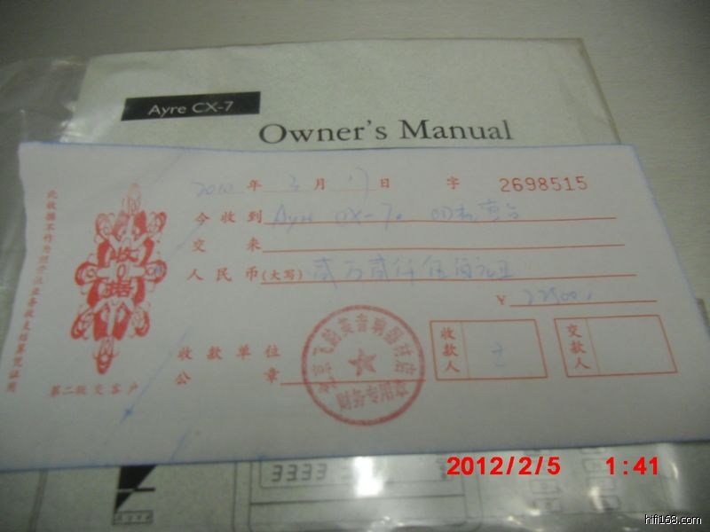 2010年购于北京飞韵美,行货艺雅cx-7e最后一批,9新,无修磨.原包装,购买收据,遥控器附件齐全,一切正常使用。