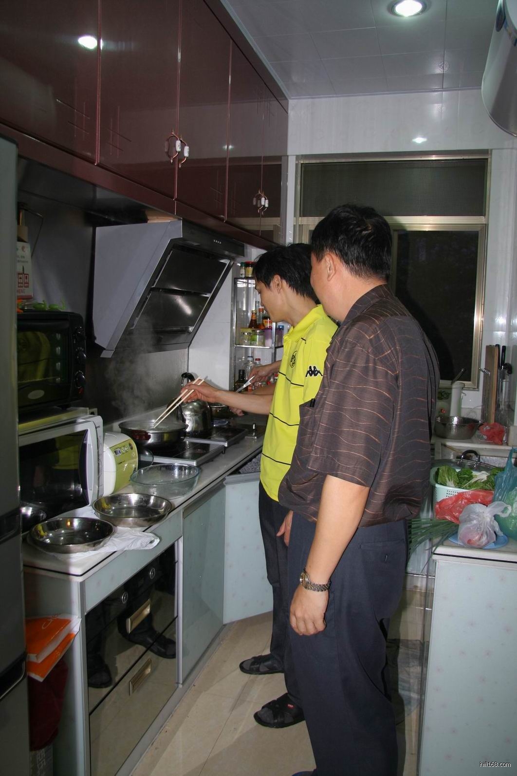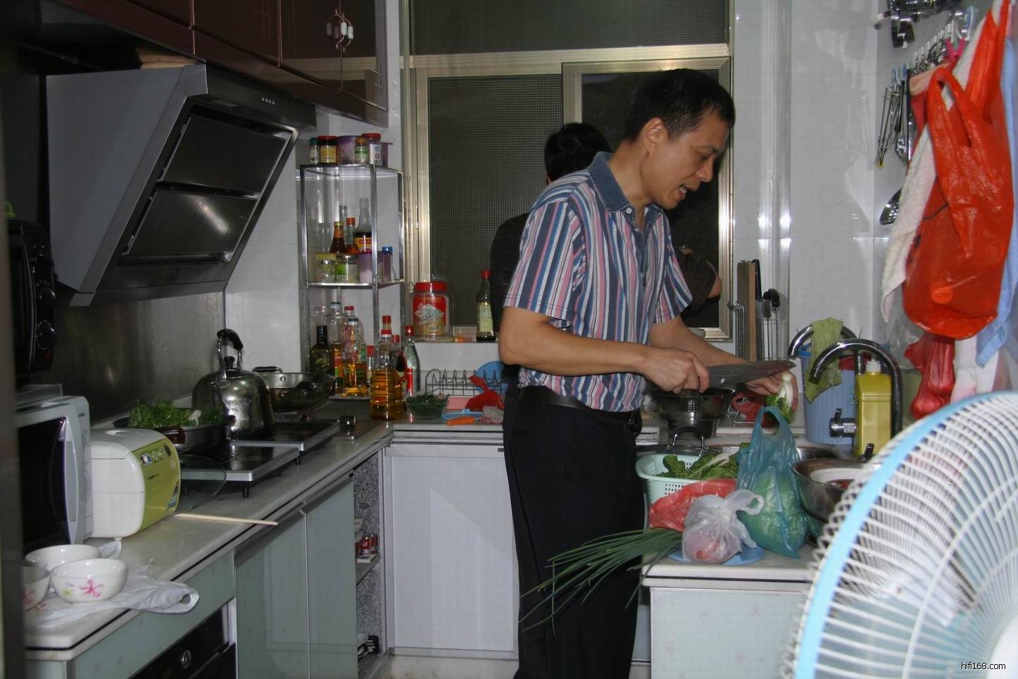 进入权哥家只见他一人在厨房里忙个不停,他说要亲自下厨煮些妙手小菜等大家品尝。