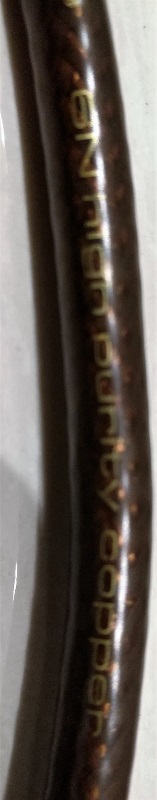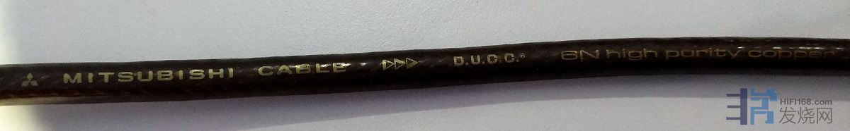 此线,用料非常奢侈,每个极有两根0.8mm的单晶铜单独绝缘构成。线身标明纯度6N,单晶铜,铜箔屏蔽加铜网。内部棉线避震,最外部的绝缘层非常特殊,不是通常的橡胶,是一个半透明的物质,这种绝缘层我个人只在天仙配的参考级电源线上看到过。