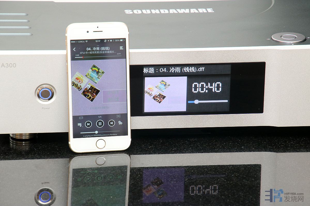 A300有两个控制方式,一个是遥控,遥控方式不能显示唱片封面;另外一个控制方式就是手机的8PLAYER 程序,用这个控制就非常方便,可以在A300上显示唱片封面。