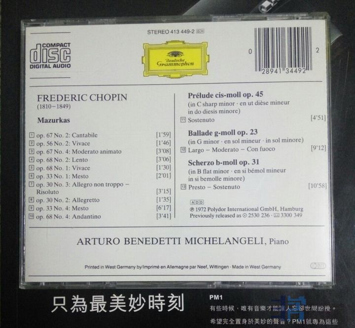4.米开朗杰利 Michelangeli 肖邦 Chopin 玛祖卡等 西德无字磨砂 260元(完美)